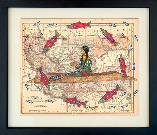 10.75 x 13.5 ″ ink, color pencil, acrylic on antique Montana 1900 map